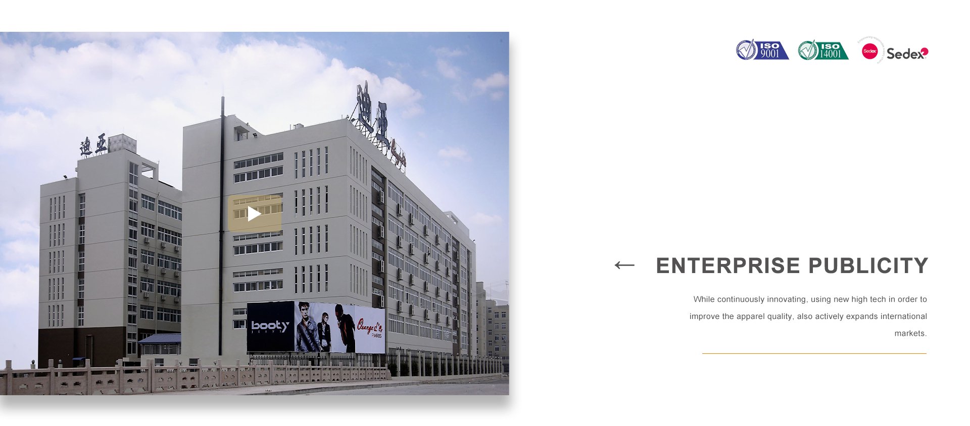 浙江迪亞服飾有限公司于1998年在世界時尚品牌之都——法國巴黎二區(qū)應(yīng)運(yùn)而生。同年,在浙江省甌海經(jīng)濟(jì)開發(fā)區(qū)東方南路28號設(shè)立服裝制造工廠。公司集服裝設(shè)計、生產(chǎn)、營銷、品牌于一體,在不斷創(chuàng)新、采用高新技術(shù)提高服飾質(zhì)量的同時,積極拓展國際市場,海外營銷部長期與LV集團(tuán)旗下的MAJE、SOEUR、BALIBARIS等國際著名品牌保持非常緊密的合作關(guān)系。