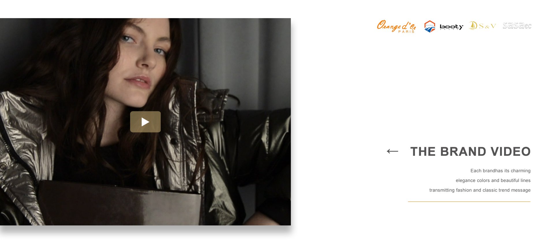 品牌建設(shè)是公司堅持不懈的追求,我們每年都會積極參加國內(nèi)外舉辦的各大服裝展銷會。憑借著良好的質(zhì)量與信譽(yù),市場占有率在逐漸擴(kuò)大,產(chǎn)品遠(yuǎn)銷歐洲、美洲、亞洲等國。公司以生產(chǎn)棉衣、羽絨服、派克、大衣、夾克、運(yùn)動休閑服飾等為主,旗下主打品牌有 ORANGE D’OR 、CLAIRVAL、BOOTY JEANS 、S&V和SASAEC,各品牌服飾均以典雅的色彩、優(yōu)美的線條、卓越的魅力吸引著都市麗人,將時尚、經(jīng)典的潮流信息予以淋漓盡致的演繹。